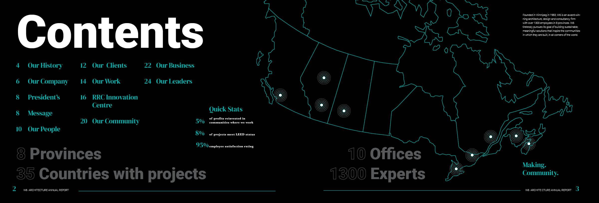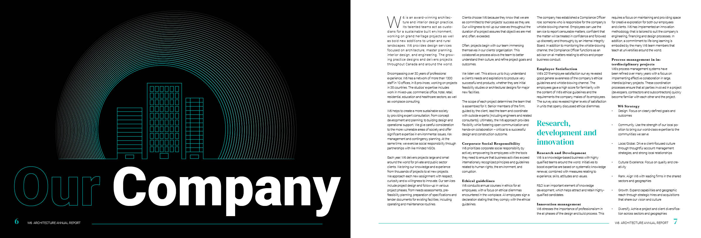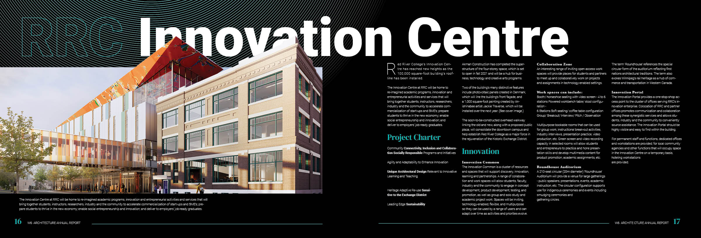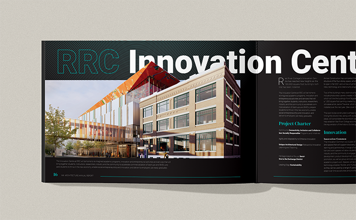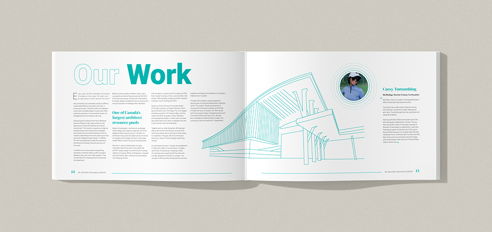 The project features visual renderings, diagrams, and sketches, emphasizing thoughtful design decisions and the development process behind creating a functional and visually engaging annual report.